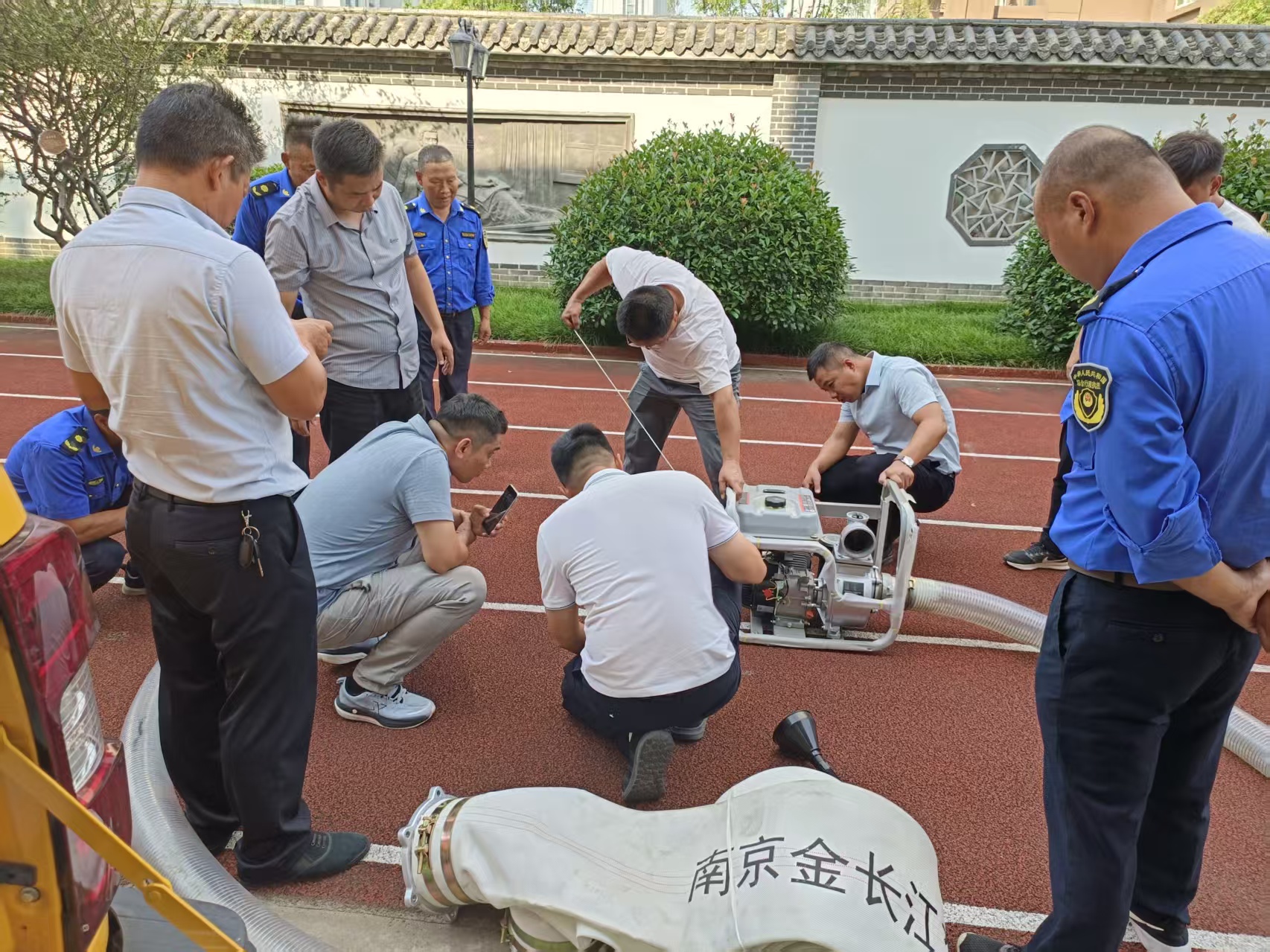 实操环节中,各街道抢险队员代表分组轮训实操,在运维专家精准指导下,沉浸式参与移动泵车组装调试、应急启动、模拟排涝等实战演练。从设备架设、水管对接至功率调控,队员们严格遵循操作规程完成各环节操作,反复打磨细节。此次实操不仅让队员们娴熟掌握了移动泵车使用技能,更在模拟场景中提升了应急响应速度与协同处置效能,实战能力得到质的提升。